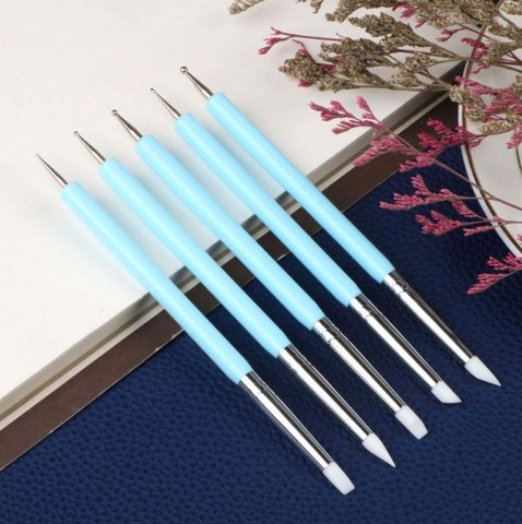 5 Stks/set Double-Ended Puntjes Set Nail Ciseleerpennen Craft Art Siliconen Borstels Aardewerk Klei Tool