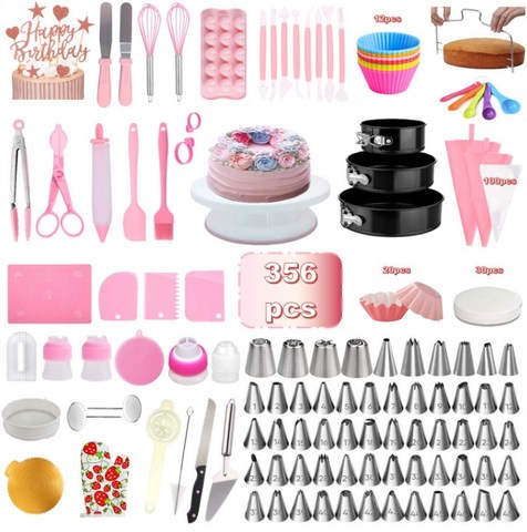 356 PCS Kuchen-Plattenspieler-Set mit runden Kuchen formen Dekorations zubehör Kit Backen Gebäck Werkzeuge Back zubehör