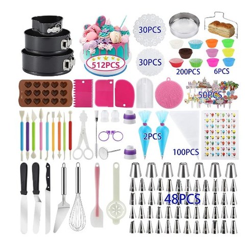 512 Stück Hot Sale Cake Decora ting Kits Zubehör mit Cake Turntable Cake Tips Icing Spatel Silikon Piping Bag und Coupler Backen